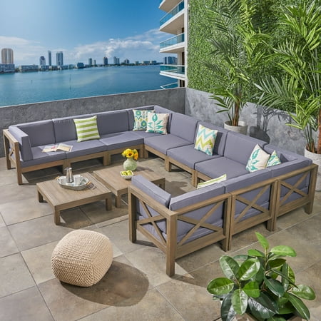Choose a sectional that matches. Our team of experts has selected the best outdoor wood sectional sets out of hundreds of models. Crafted of solid acacia wood in a rich teak finish, this set includes two sofas , one armless corner unit, and a coffee table. Well, not quite anything, but it'll definitely hold up to the roughing up that happens from everyday wear, including scratches, bumps, and water exposure. Also, white fabric for an outdoor space is really impractical.